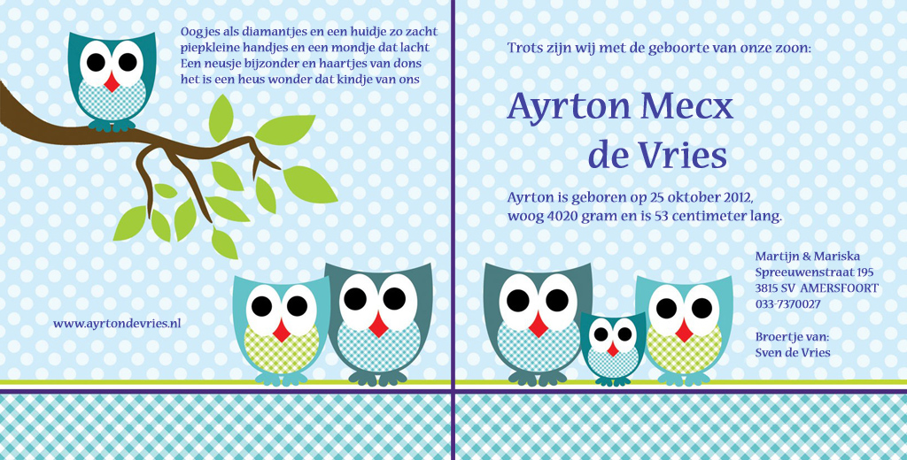 Ayrton is geboren op 25 oktober 2012, woog 4020 gram en was toen 53 centimeter lang.